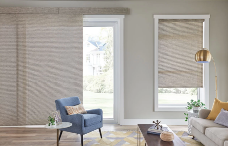 Panel track blinds are ideal for covering wide windows and patio doors with ease. Featuring vertical louvers that slide along a durable aluminum track, these blinds offer full coverage and customizable light control. Choose from a variety of fabrics, colors, and textures to create the perfect look for your space. Custom panel tracks allow even greater flexibility, including extra-long lengths for larger areas, giving homeowners a truly unique design.